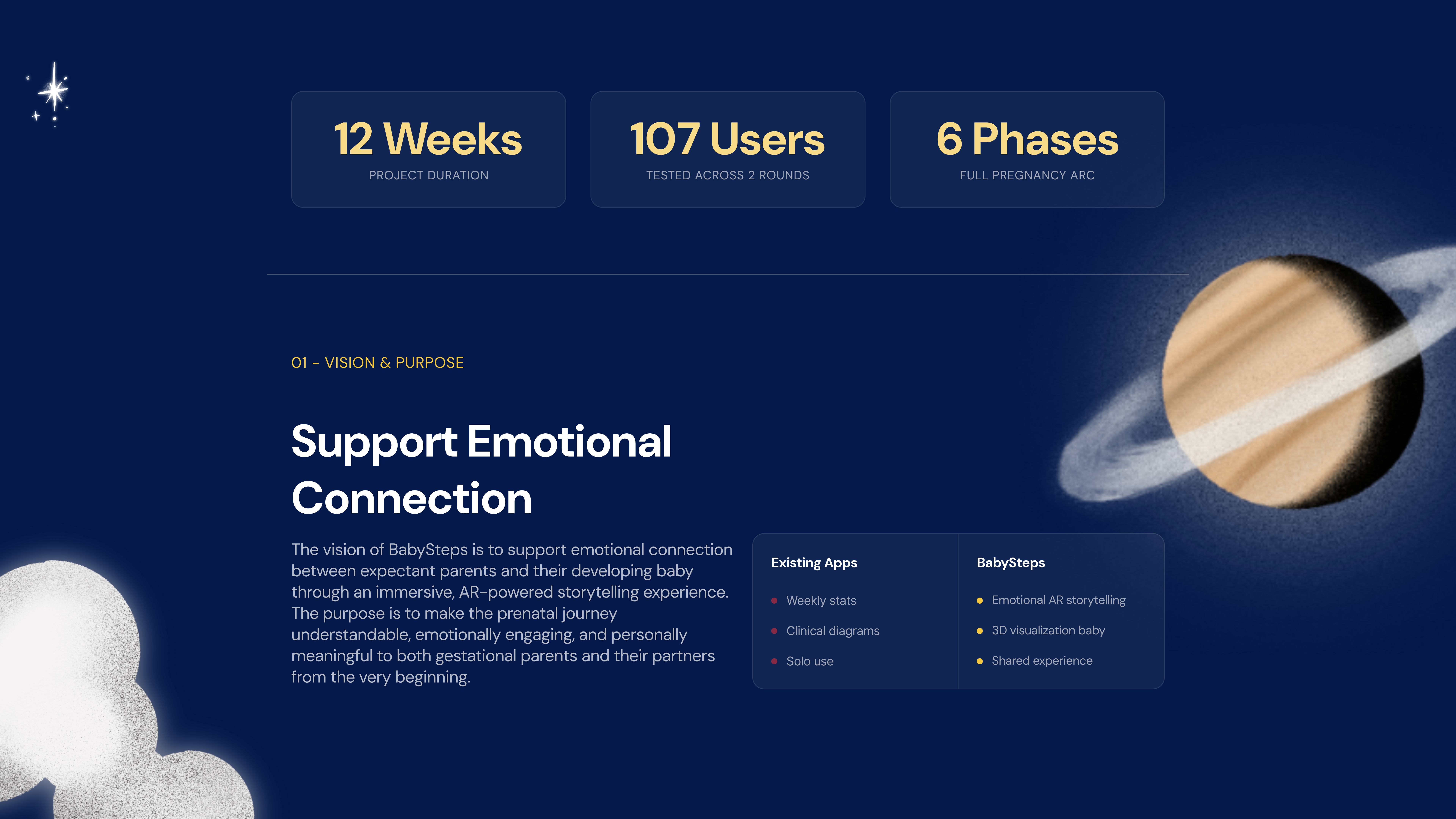 An AR mobile app that transforms the 40-week pregnancy journey into an immersive, emotionally resonant experience, using a living Night Sky as its narrative framework.